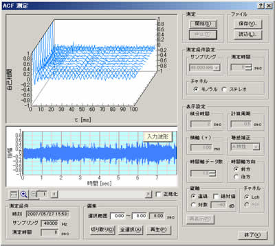 ランニングACFの測定と三次元表示、及び測定データのデータベースへの保存を行うことができます。