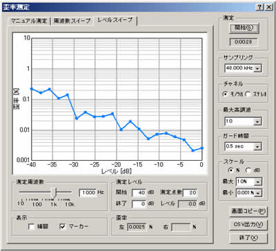 歪率測定機能を使用して、アンプやスピーカの周波数および出力レベルに対する歪み率を、自動的にグラフ化することができます。